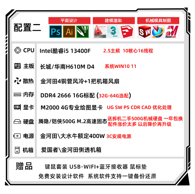 根据您对电脑的需求用途和预算,按您要求定制配置方案或您自有配置单可咨询报价,价格服务满意可在本店直接装机。个性化电脑DIY定制装机服务,一对一专业写配置报价,做一家靠谱、良心、实在、有原则的电脑组装DIY店铺。