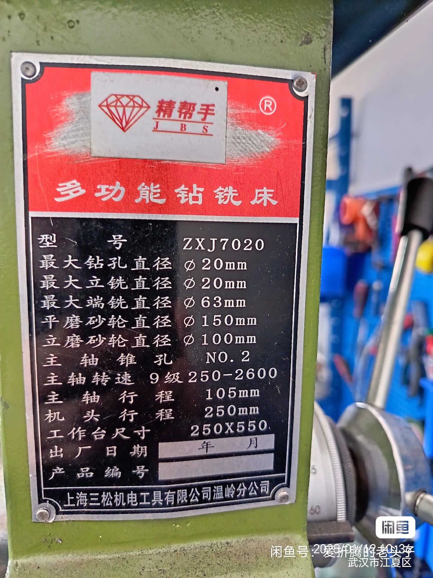 精帮手出一台多功能钻铣床,型号zxj7020,机子正常使用中,成色如新